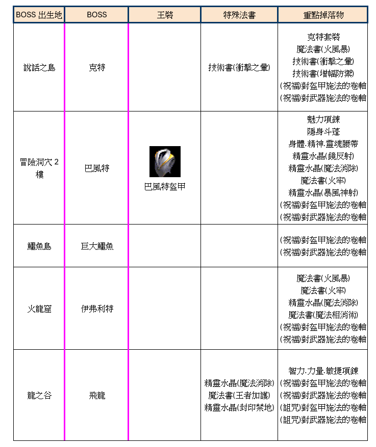 【壹號店天堂】BOSS特殊掉落 - 地圖資訊 - 壹號店天堂 ✦ LINEAGE -